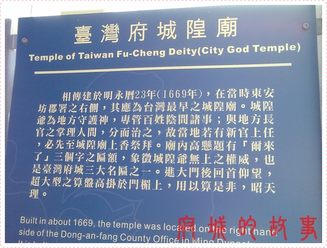 城隍廟:從來不知道原來城隍廟上的「爾來了」與「大算盤」,有什麼特殊的涵意,就連門上兩個門神秦叔寶、尉遲恭的畫風,其實都別具特色。就如同我在海角七號觀後感中說的,當我們對羅浮宮藝術品的來歷如數家珍時,有沒有一絲絲對台灣那些有著斑駁滄桑歷史的古老廟宇房舍建築一無所知的遺憾?